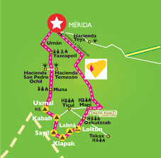 Significa montículos y este recorrido incluye los sitios arqueológicos de Uxmal, Kabah, Sayil y Labná.Uxmal.